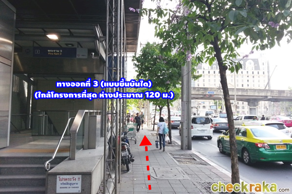 ถ้าออกมาจากทางออกที่ 3 แล้วก็ให้เดินไปทางซ้ายมุ่งหน้าไปยังแยกพระราม 9 ได้เลย