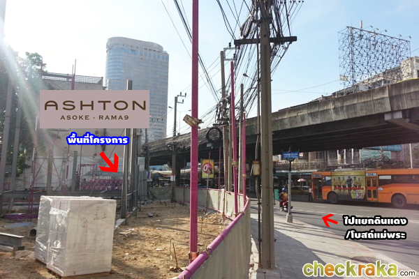จากตรงใต้สะพานข้ามแยกพระราม 9 ก็จะเห็นพื้นที่โครงการ แอชตัน อโศก-พระราม9 แล้วค่ะ