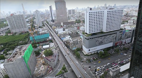 มุมสูงบริเวณแยกพระราม 9 มองไปฝั่งดินแดง ซ้ายมือที่ตั้งโครงการค่ะ ขวามือคือ Grand Mercure Hotel Fortune บรรยากาศรอบๆ โครงการ