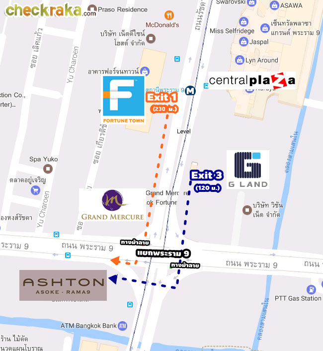 สามารถเดินไปยังโครงการ แอชตัน อโศก-พระราม 9 จากทางนี้ได้เหมือนกันค่ะ จะอยู่ห่างจากโครงการประมาณ 250 ม.