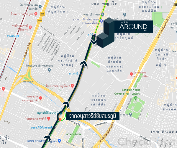 โนเบิล อราวน์ อารีย์ (NOBLE AROUND ARI) เป็นเรื่องง่ายๆ ไปเลย เพราะโครงการตั้งอยู่ติดถนนเส้นหลักอย่าง