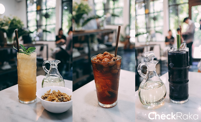 แก้วสุดท้ายคือซิกเนเจอร์ของร้าน "น้ำอัญชันตะไคร้" สูตรนี้ที่เดียวในโลก เข้มข้นสุดๆ เสิร์ฟพร้อมน้ำเชื่อมเพิ่มความหวาน