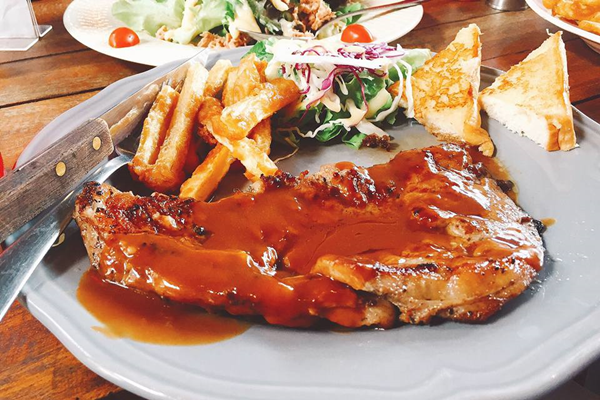 อย่างร้านนี้ก็คือ ร้าน Steak home 52 มีเมนูน่าทานอย่าง Sirloin Steak, มันบดอบชีส และ Fish & Chips