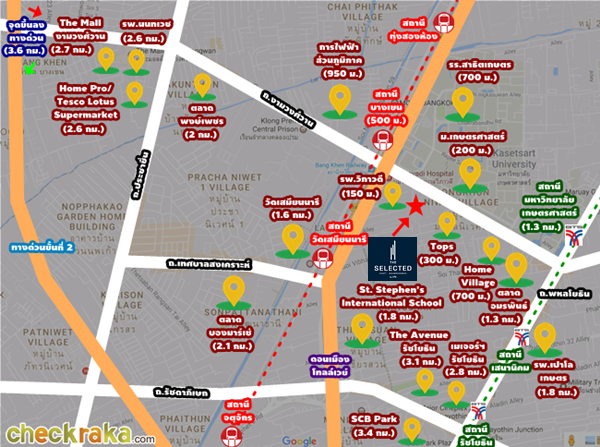 แผนที่โครงการ The Selected Kaset-Ngamwongwan by LPN และระยะห่างจากสถานที่ใกล้เคียง