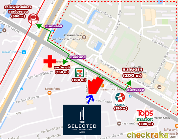 พรีวิวทำเลคอนโดใหม่รอบนี้ เรามากันที่ถนนงามวงศ์วาน เพื่อดูคอนโดใหม่ที่ชื่อว่า "เดอะ ซีเล็คเต็ด เกษตร-งามวงศ์วาน บาย แอลพีเอ็น (THE SELECTED KASET-NGAMWONGWAN by LPN)" ซึ่งโครงการนี้อยู่ฝั่งตรงข้ามกับมหาวิทยาลัยเกษตรศาสตร์เลย ติดถนนใหญ่งามวงศ์วาน ใกล้กับถนนวิภาวดีรังสิต เดินไปไม่กี่ก้าวก็ถึงโรงพยาบาลวิภาวดีแล้ว วันนี้ CheckRaka.com ขอลงพื้นที่พาไปสำรวจทำเลรอบๆ โครงการกันค่ะ