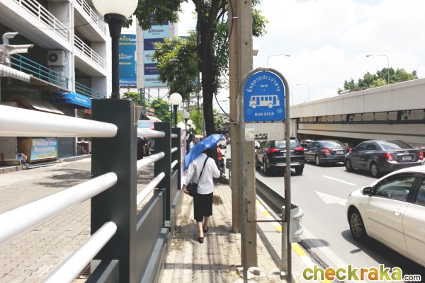 ใกล้ๆ กันก็จะมีป้ายรถประจำทางอยู่ด้วย
