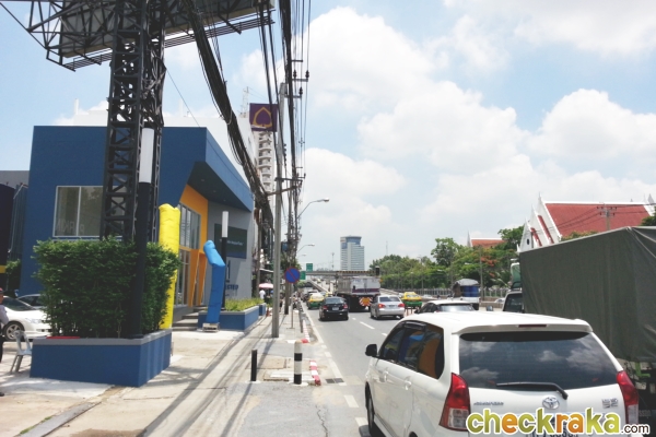 กลับมาที่ฝั่งโครงการแล้วเดินต่อไปอีกนะคะ ใกล้ๆ กับสะพานลอยคนข้าม จะมีป้ายรถประจำทางอยู่ด้วย