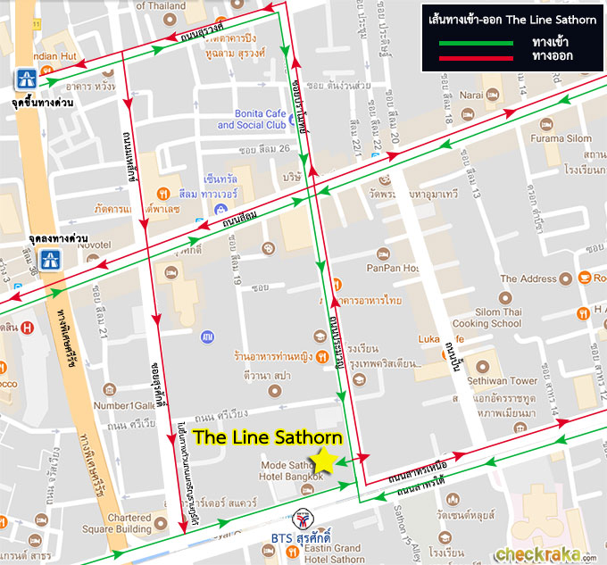 แผนที่แสดงเส้นทางเข้า-ออก โครงการ The Line Sathorn