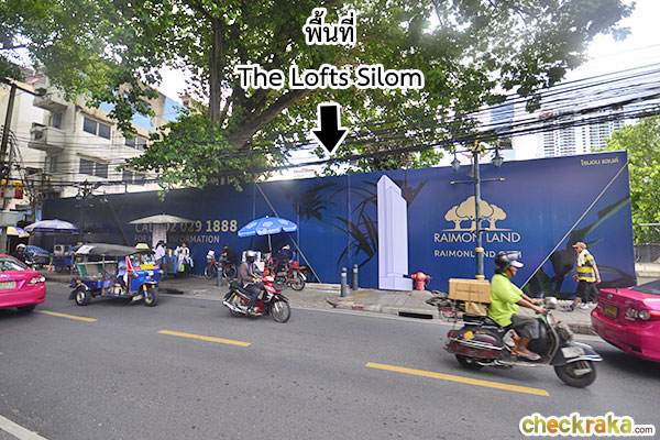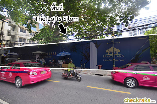 ถึงหน้าพื้นที่โครงการ "The Lofts Silom" แล้วค่ะ ล้อมรั้วมีป้ายระบุไว้ชัดเจน