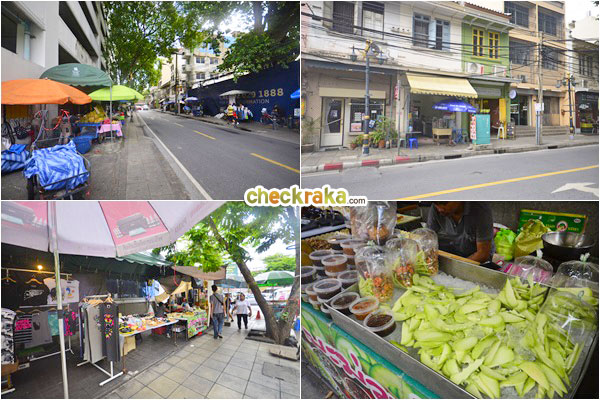ร้านรวงต่างๆ บริเวณปากซอยประมวญฝั่งถนนสีลม มีทั้งเสื้อผ้าและ Street Food หลากหลายเลยค่ะ