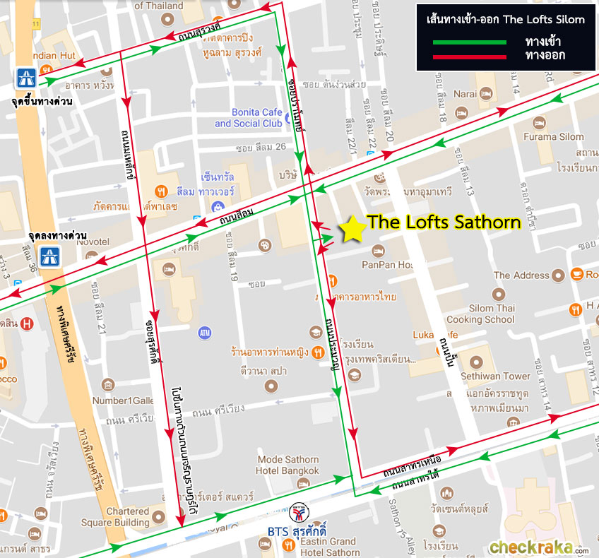 (เลี้ยวจากสาทรได้ตรงแยกนี้ จะไปได้ทั้ง The Line Sathorn และ The Lofts Silom)