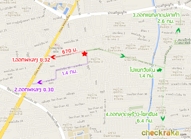 - เส้นทางเบอร์ 2 นี้คือจากตัวโครงการ (ดาวสีแดง) วิ่งไปตามถนนเสนานิคม 1 ซอย 12 ก็จะเจอพหลโยธิน 30 วิ่งไปเรื่อยๆ ก็ออกถนนใหญ่พหลโยธิน