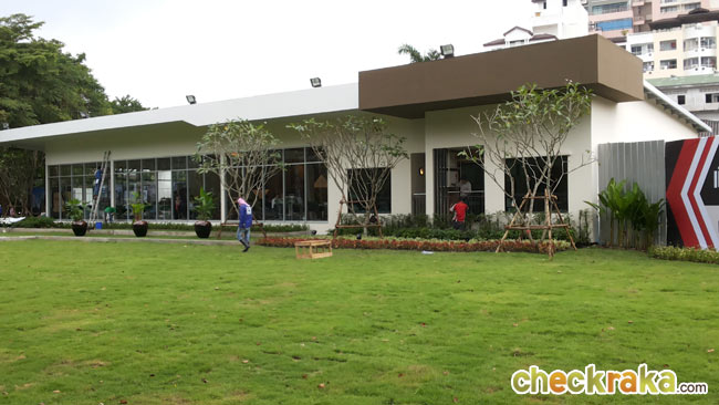 พื้นที่สวนเขียวๆ หน้าสำนักงานขายนี้เมื่อทำการก่อสร้างจะกลายเป็นที่ตั้งของ Tower 1
