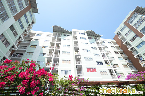 โครงการนี้เป็นโครงการพร้อมโอน และพร้อมเข้าอยู่ โดยห้องที่ขายเป็นห้องเปล่า ราคาที่ขายเป็นราคาที่จับต้องได้ และถือว่าไม่แพงเพราะบางยูนิตเริ่มต้นเพียงประมาณ 30,000 บาทปลายๆ ต่อตร.ม. ดังนั้น หากใครที่มองหาคอนโดราคาประหยัดในย่านศรีนครินทร์ ไม่ว่าจะเพื่ออยู่เอง หรือเพื่อลงทุน โครงการนี้ก็เป็นอีกตัวเลือกหนึ่งที่น่าพิจารณา ในแง่ของการเดินทางนั้น สำหรับคนใช้รถก็ค่อนข้างสะดวกเพราะเข้า-ออกสะดวกจากทางถนนใหญ่ และไม่ไกลจากเส้นวงแหวนรอบนอก แต่ที่จอดรถก็ค่อนข้างจำกัดนะคะเพราะมีประมาณ 40% (รวมจอดซ้อน) และจอดรถได้แค่ชั้นเดียวใต้อาคาร และรอบๆ อาคารเท่านั้น สำหรับคนที่ไม่ใช้รถ ก็ถือว่าไม่ลำบาก เพราะมีสองแถว และวินมอเตอร์ไซค์วิ่งผ่านไปมาหน้าโครงการตลอด ซึ่งสามารถเชื่อมต่อไป BTS สถานีแบริ่งได้ และในอนาคตหากรถไฟฟ้าเส้นสีเขียวส่วนต่อขยาย (สถานีสำโรง) หรือเส้นสีเหลือง (สถานีศรีเทพา) เสร็จ ก็จะสะดวกมากขึ้น เพราะสองสถานีใหม่นี้จะใกล้ตัวโครงการมากกว่าสถานีแบริ่ง บริเวณรอบๆ โครงการมีร้านอาหาร หรือร้านสะดวกซื้อให้ใช้ชีวิตได้ไม่ลำบาก โดยเฉพาะอย่างยิ่งมี Tesco Lotus Plus Mall ที่เรียกว่าประตูแทบจะติดกัน ฝากท้องกันได้เลยค่ะ ดังนั้นโดยรวมแล้ว โครงการนี้ค่อนข้างเหมาะกับคนที่ชอบใช้ชีวิตง่ายๆ อยากกิน หรือซื้อของ และใช้ชีวิตแบบเรียบง่ายแบบเดินไปเดินมารอบโครงการได้โดยอาจไม่ต้องใช้รถ ตัวอาคาร และส่วนกลางค่อนข้างจะพื้นๆ ธรรมดา ไม่ว่าจะเป็นดีไซน์ทั่วไปภายในอาคาร Lobby หรือบริเวณส่วนกลาง หากใครเคยใช้ชีวิตอยู่ในอพาร์ตเมนท์ หรืออยู่หอพักมาก่อน บรรยากาศโครงการนี้อาจให้อารมณ์ประมาณนั้นได้ ซึ่งเมื่อเทียบกับเงินผ่อนรายเดือนสำหรับราคาโครงการนี้ที่ตั้งขายไว้แบบไม่สูง กับค่าเช่าที่เราต้องจ่ายเมื่อเช่าอพาร์ตเมนท์ หรือหอพัก การได้กรรมสิทธิ์ในห้องพักโครงการนี้เลย อาจเป็นตัวเลือกที่ดีสำหรับคนที่อยากเปลี่ยนจากการเช่า มาเป็นเจ้าของห้องชุดสักห้องหนึ่งก็ได้ค่ะ Layout ห้องโดยรวมถือว่าจัดวางได้ลงตัว เดินไปเดินมาในห้องได้อย่างราบรื่น ความสูงของพื้นถึงเพดานประมาณ 2.5 เมตร ซึ่งก็ถือว่าไม่อึดอัด ในส่วนของวัสดุนั้น ทางโครงการเน้นฟังก์ชั่นการใช้งานมากกว่าความสวยงาม ดังนั้น เกรดของวัสดุจึงอยู่ในเกณฑ์พอใช้ได้เท่านั้น ซึ่งก็สะท้อนออกมาในราคาห้องชุดโดยรวมที่ไม่แพงนั่นเองค่ะ สถานะปัจจุบันของโครงการ (ก.พ. 57)