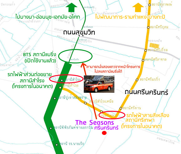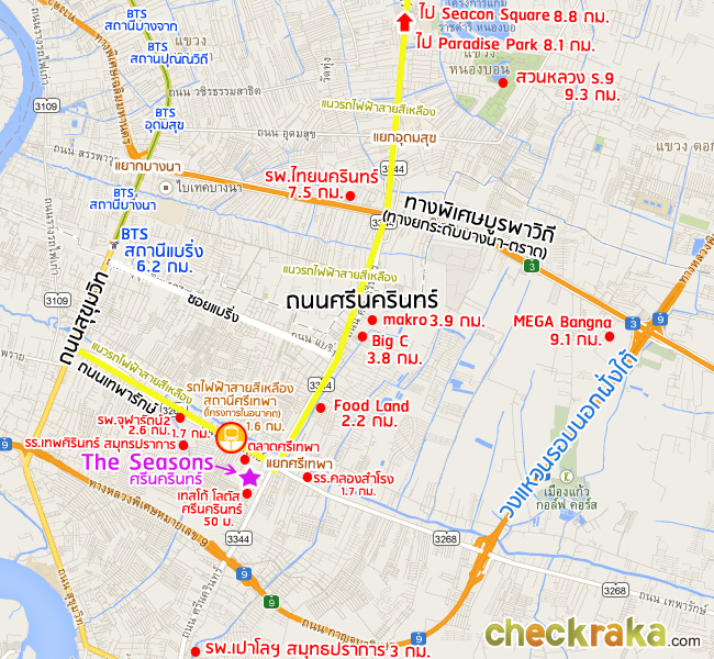 แผนที่แสดงสภาพแวดล้อมรอบๆ โครงการ เดอะ ซีซั่น ศรีนครินทร์