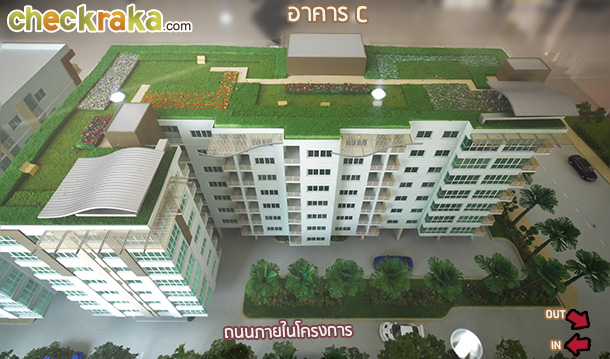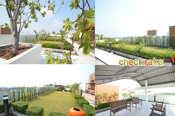 มุมสีเขียวและที่นั่งรับลมเย็นๆ บนชั้นดาดฟ้า ภาพห้องตัวอย่างและ Lay out
