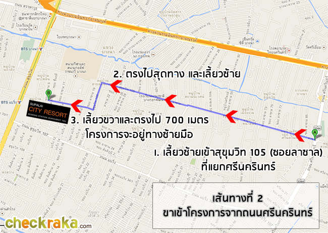 เส้นทางที่ 2 - ขาออกโครงการ ออกโดยใช้ถนนสุขุมวิท 105 เชื่อมถนนศรีนครินทร์