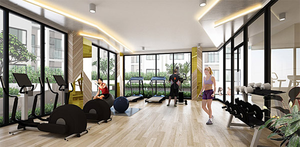 ภาพจำลองบรรยากาศภายในห้อง Fitness Room ขนาด 40 ตร.ม.