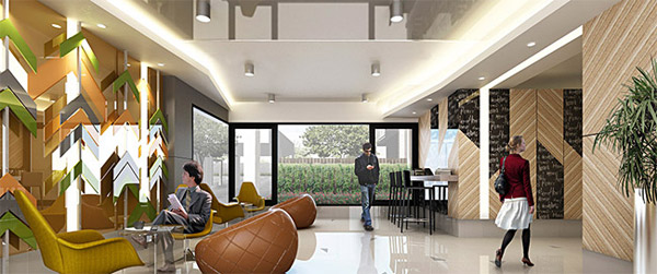 ภาพจำลองบรรยากาศ Lobby ของโครงการ ซึ่งอยู่บริเวณชั้น 1 ของทั้ง 2 อาคาร ภาพห้องตัวอย่างและ Lay out