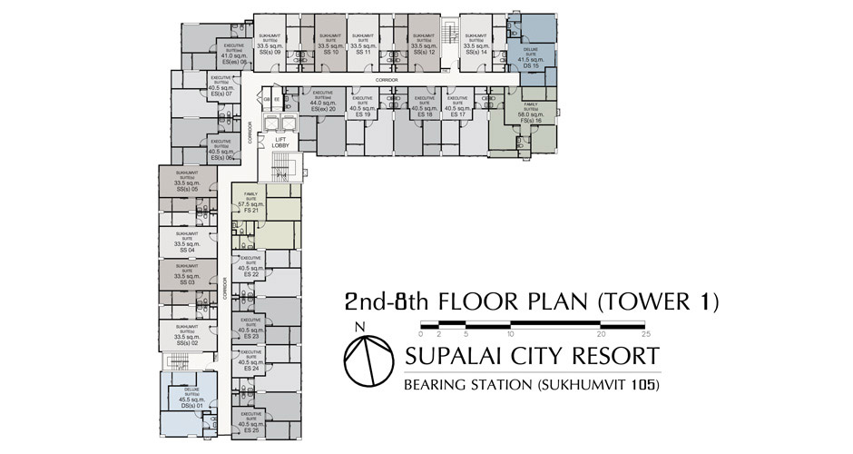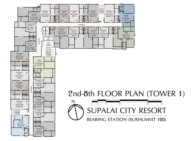 (คลิกเพื่อดูภาพ Floor Plan ขนาดใหญ่ของอาคาร 1 ชั้น 2-8)