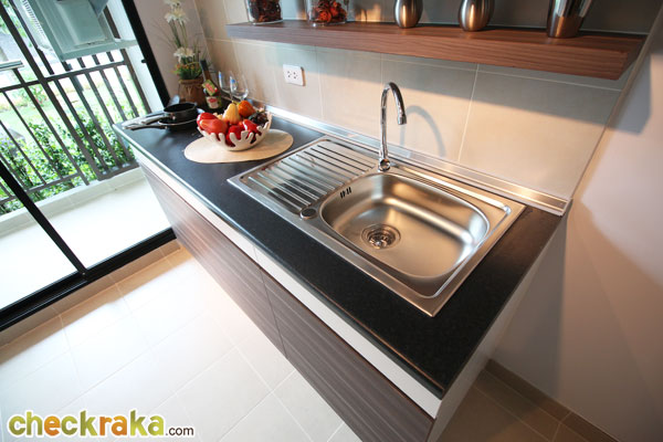 เคาน์เตอร์ครัวใช้ซิ้งหลุมเดียว กับก๊อกซิงค์ MEX ตัว Top เคาน์เตอร์ปูด้วยลามิเนตสีดำ
