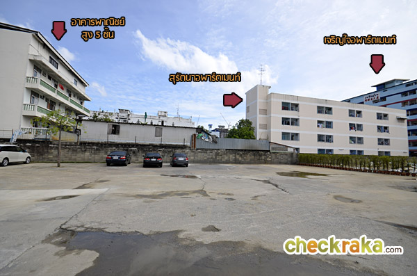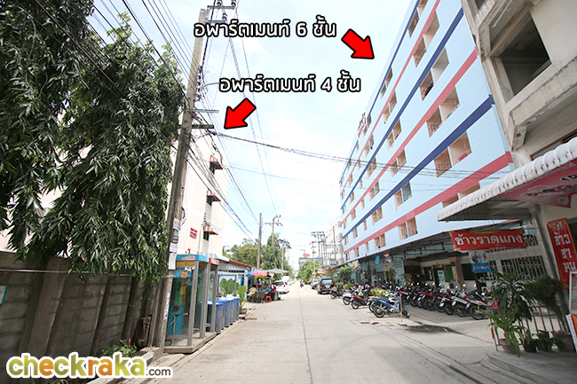 ติดกับร้านขายข้าวแกงก็จะเป็นอพาร์ตเมนท์ 6 ชั้นค่ะ และตรงข้ามกันก็เป็นอพาร์ตเมนท์ 4 ชั้น