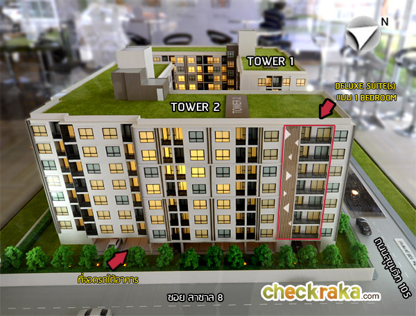 อาคาร 2 : ตั้งอยู่ทางซ้ายของแปลงที่ดิน สูง 8 ชั้น