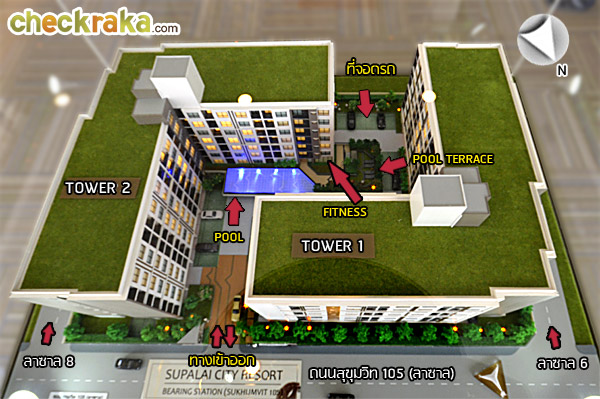 ถึงแล้วค่ะ โครงการศุภาลัย ซิตี้ รีสอร์ท สถานีแบริ่ง-สุขุมวิท 105 ห่างจากรถไฟฟ้าสถานีแบริ่ง 350-400 เมตร