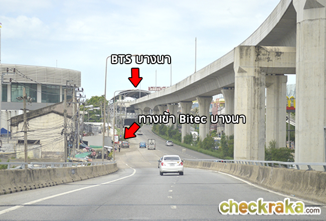 ออกจากทางด่วนมาจะเจอทางเข้าที่ 3 ไบเทคบางนาค่ะ และด้านบนจะเป็นรถไฟฟ้า BTS สถานีบางนา ให้ตรงต่อไปนะคะ