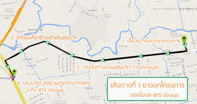 เส้นทางที่ 1 - ขาออกโครงการ ออกไปเจอรถไฟฟ้า BTS สถานีอ่อนนุช