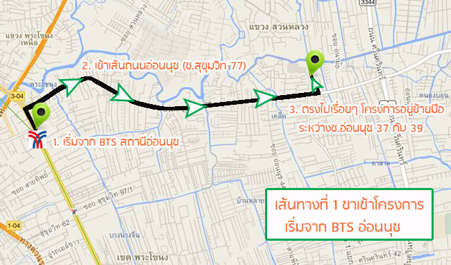 เส้นทางที่ 1 - ขาเข้าโครงการจากรถไฟฟ้า BTS สถานีอ่อนนุช