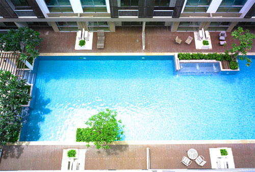 ที่เราขอทางโครงการเข้าไปเก็บภาพมาฝาก บรรยากาศน่าจะใกล้เคียงกับสระว่ายน้ำของโครงการ