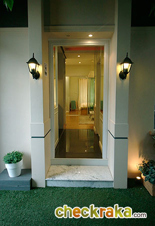 ด้านหน้าทางเข้าห้องตัวอย่างไม่ได้ติดประตูมาให้นะคะ