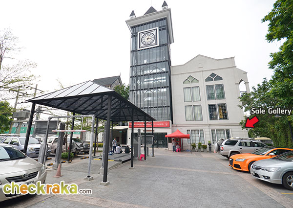 ตรงเข้าไปตามทางจะมองเห็นอาคารสีขาวหน้าหอนาฬิกา บริเวณนั้นเป็นที่ตั้งของ Sales Gallery