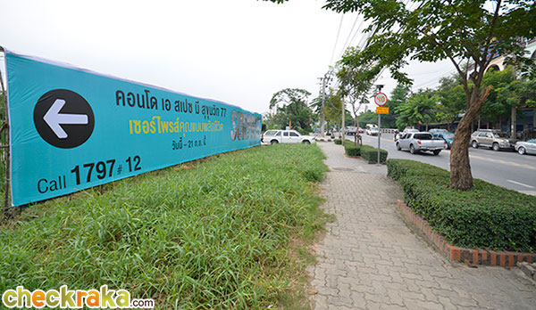 ตรงไปจนสุดทางซ้ายมือคือทางเข้าของโครงการคอนโด เอ สเปซ สุขุมวิท 77 โครงการรุ่นพี่ที่สร้างเสร็จไปก่อน