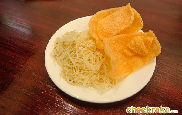 ออเดิร์ฟของที่นี่ค่ะ เห็นหน้าตาดูธรรมดาๆ แบบนี้ แต่รสชาติดีสุดๆ เส้นหมี่ขาวๆ นั่น กินเพลินๆ อร่อยมากค่ะ