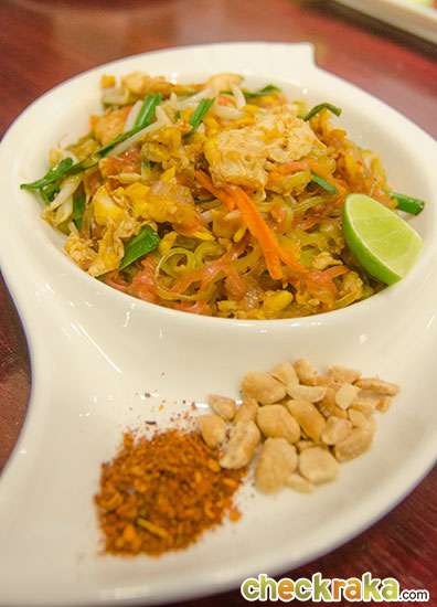 จานนี้ผัดหมี่โคราช มีพริกป่นกับถั่วป่นมาให้ปรุงตามใจชอบ รสชาติกลมกล่อมค่ะ