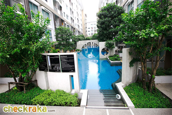 สระว่ายน้ำระบบเกลือ 2 สระ ขนาดกว้าง 8 x 50 เมตร ลึก 1.30 เมตร (มีโซนตื้นความลึก 40 ซม.สำหรับเด็ก) ตั้งอยู่ที่ระหว่างอาคาร A กับอาคาร B หนึ่งจุด และตั้งอยู่ระหว่างอาคาร B กับอาคาร C อีกหนึ่งจุด ที่นั่งเล่นพักผ่อนบริเวณสระว่ายน้ำพร้อมม่านน้ำตกอารมณ์รีสอร์ตที่สระว่ายน้ำ ระหว่างอาคาร A กับอาคาร B ฟิตเนสพร้อมเครื่องออกกำลังกายขนาดพื้นที่ 70 ตร.ม. ตั้งอยู่ที่อาคาร B ชั้นล่าง พื้นที่สีเขียวและสวนหย่อมรอบๆ โครงการ กล้องวงจรปิด CCTV พร้อม รปภ. ตลอด 24 ชั่วโมง ลานจอดรถ และอาคารจอดรถอัตโนมัติ Mechanical Parking (พื้นที่จอดรถรวม 40%) ลิฟต์โดยสาร 2 ตัวต่อ 1 อาคาร (สัดส่วนการใช้ลิฟต์ต่ออาคารอยู่ที่ 139 : 1 ถือว่าไม่ได้มากเกินไป) มี Shuttle Bus service รับ-ส่งระหว่างโครงการไปยัง BTS สถานีอ่อนนุช และ Shuttle Bus service รับ-ส่งระหว่าง ตัวโครงการไปยัง Pickadaily Bangkok ภาพจำลองบรรยากาศและสระว่ายน้ำระหว่างอาคาร