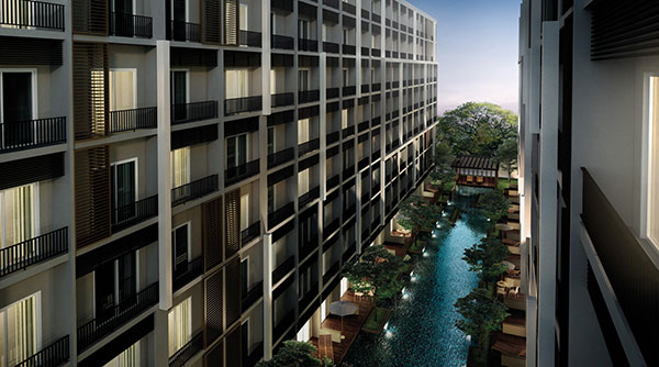 ที่จะหันหน้าออกรับวิวสระว่ายน้ำระหว่างอาคาร