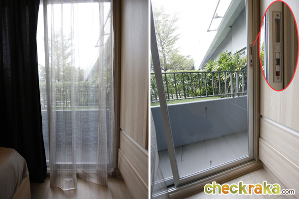 ด้านข้างเตียงเป็นระเบียง