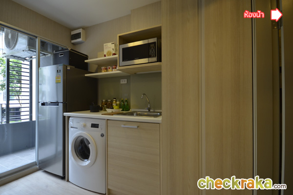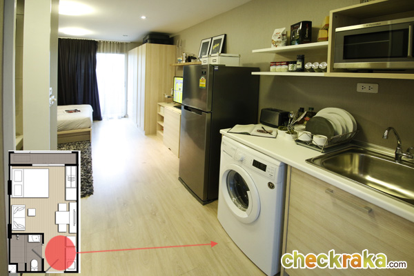 ส่วนเคาน์เตอร์ Pantry อยู่ติดประตูฝั่งตรงข้ามตู้ ที่มีเหมือนกันทุกห้องเช่นกัน
