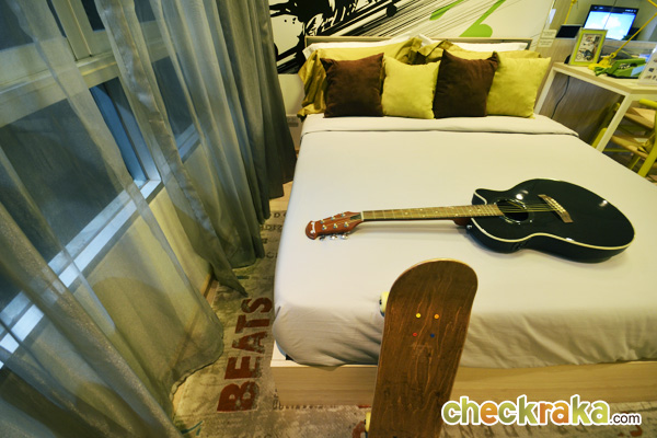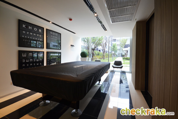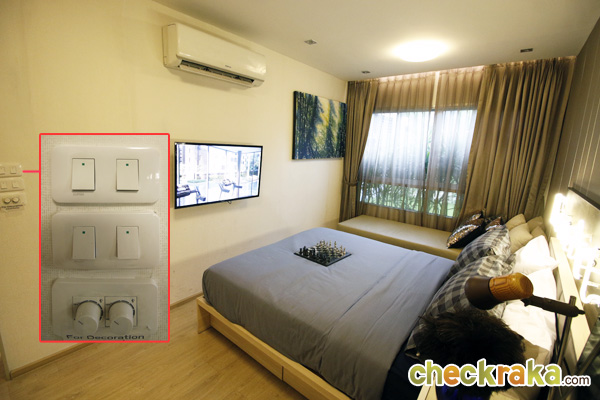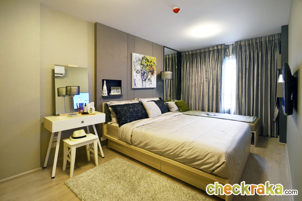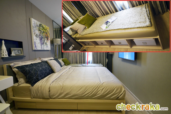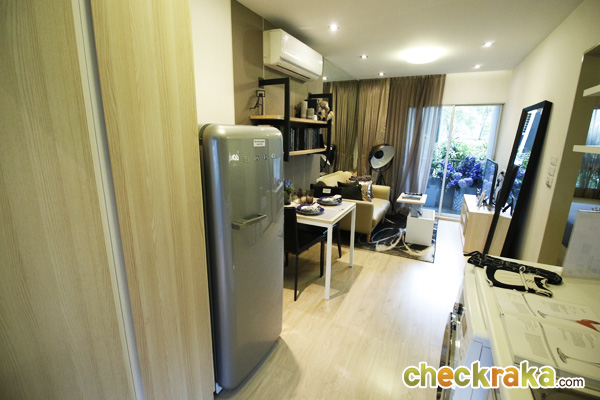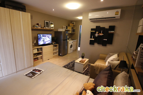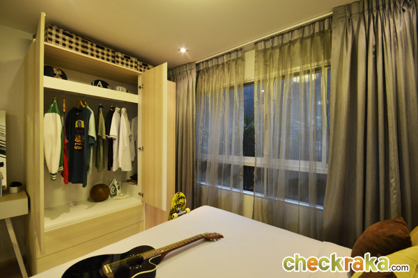 - ห้องและวัสดุ - แบบห้องทั้งหมดของโครงการมี 4 แบบคือ แบบ Studio ขนาด 24 ตร.ม., Studio ขนาด 26 ตร.ม., แบบ 1 ห้องนอน ขนาด 34 ตร.ม., และแบบ 2 ห้องนอน ขนาด 44 ตร.ม. โดยห้องที่ Sold Out ไปเรียบร้อยแล้วนั้นเป็นแบบ 2 ห้องนอน สำหรับ Layout ของห้องถูกออกแบบมาให้เป็นในสไตล์รีสอร์ทเช่นเดียวกัน มีคอนเซปต์ทำให้ตัวโครงการเป็นเสมือนคอนโดตากอากาศ เพื่อเป็นจุดพักผ่อนของเส้นสุขุมวิท โดยห้องที่ขายเป็นแบบ Fully Furnished ที่ใช้เฟอร์นิเจอร์จาก SB furniture เรียกได้ว่า Fully จริงๆ ค่ะ เพราะได้ทั้ง เตียง ตู้ โต๊ะ เก้าอี้ ชั้นวางของ ชุดครัว Pantry อีกทั้งยังมีระเบียงในทุกแบบห้องที่ใช้วางคอมเพรสเซอร์แอร์ได้ และห้องที่ใหญ่ขึ้นก็สามารถออกไปยืนรับลมชมวิวได้ด้วยเช่นกัน
