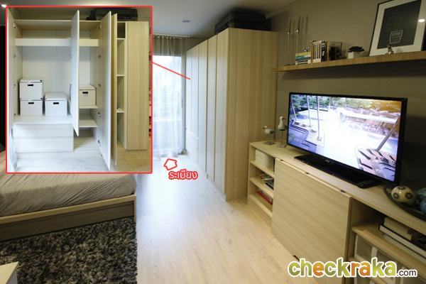 ซึ่งห้องนี้ก็มีการสลับด้านจากห้องตัวอย่างเช่นกัน โดยประตูทางเข้าจะมาอยู่ด้านขวาของห้อง