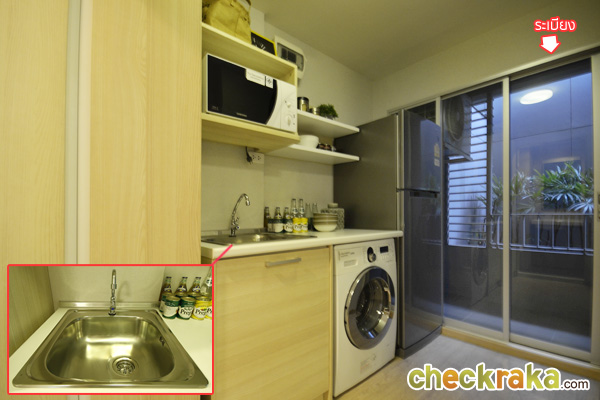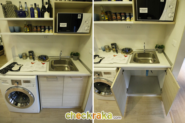 เดินออกมาจากห้องน้ำก็เป็นส่วนห้องครัว หรือ Pantry ซิงค์ล้างจานยี่ห้อ MEX ค่ะ