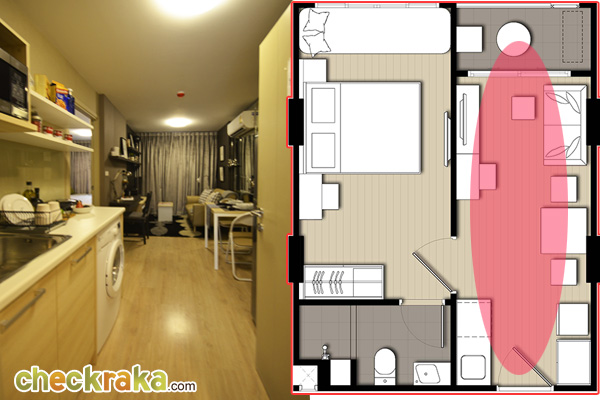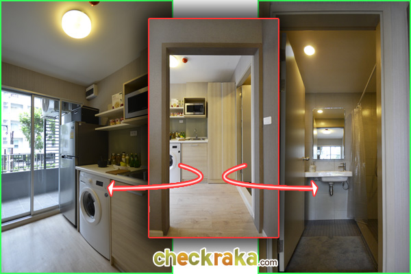 ด้านซ้ายจะเป็นห้องครัว ด้านขวาจะเป็นห้องน้ำ