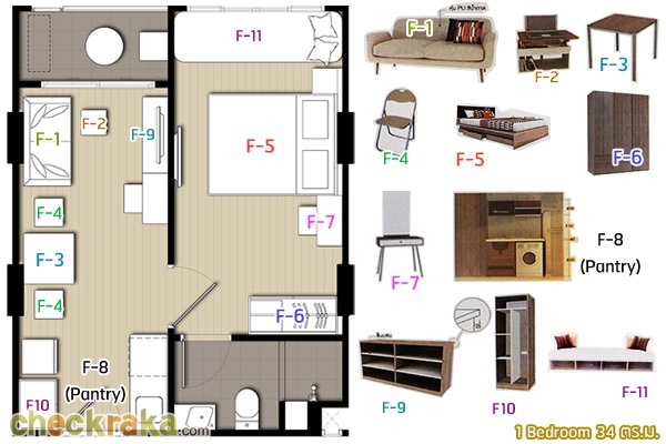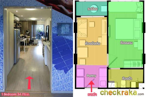3.1) ห้องจริงจากโครงการ แบบ 1 ฺBedroom ขนาด 34 ตร.ม.