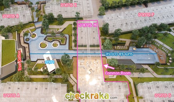ซึ่งจากที่ตั้งของห้อง ที่อยู่อาคาร H ชั้น 2 ห้องนี้เป็นวิวสระว่ายน้ำด้วยค่ะ