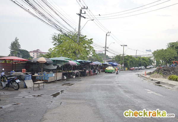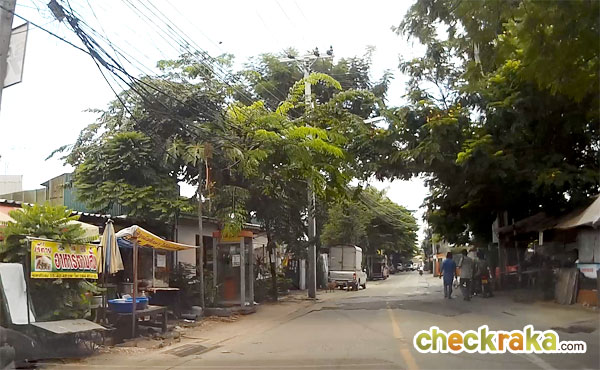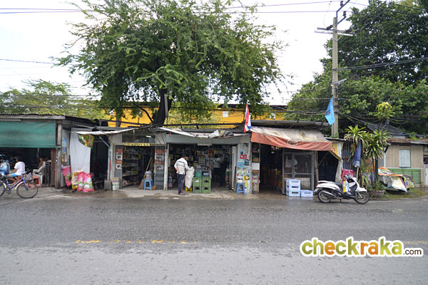 จากแยกเลี้ยวขวามาจะเจอกับร้านค้าแผงลอยอยู่ทางซ้ายมือ