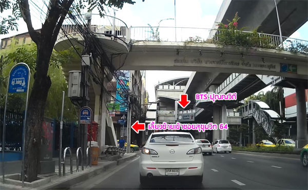 หลังจากกลับรถมาแล้วให้ชิดซ้ายไว้ค่ะ เตรียมเลี้ยวซ้ายเข้าซอยสุขุมวิท 64 เลยค่ะ