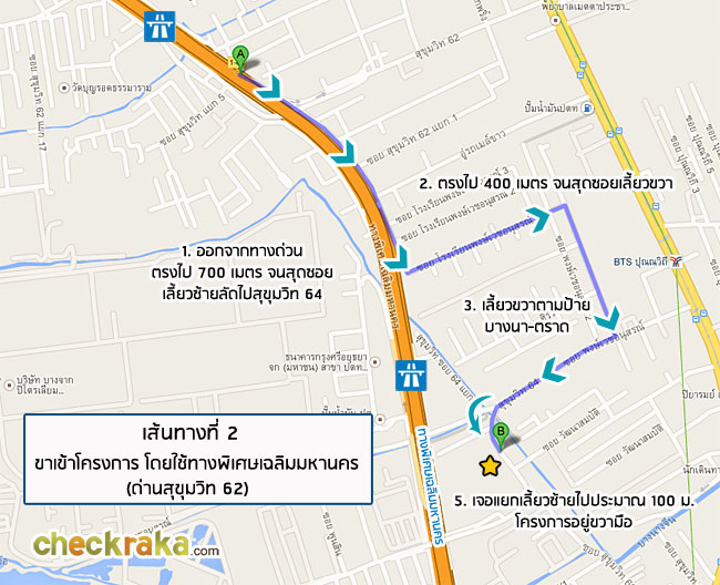 เส้นทางเข้าโครงการที่ 2 โดยใช้ทางด่วนพิเศษเฉลิมมหานคร (ด่านสุขุมวิท 62)